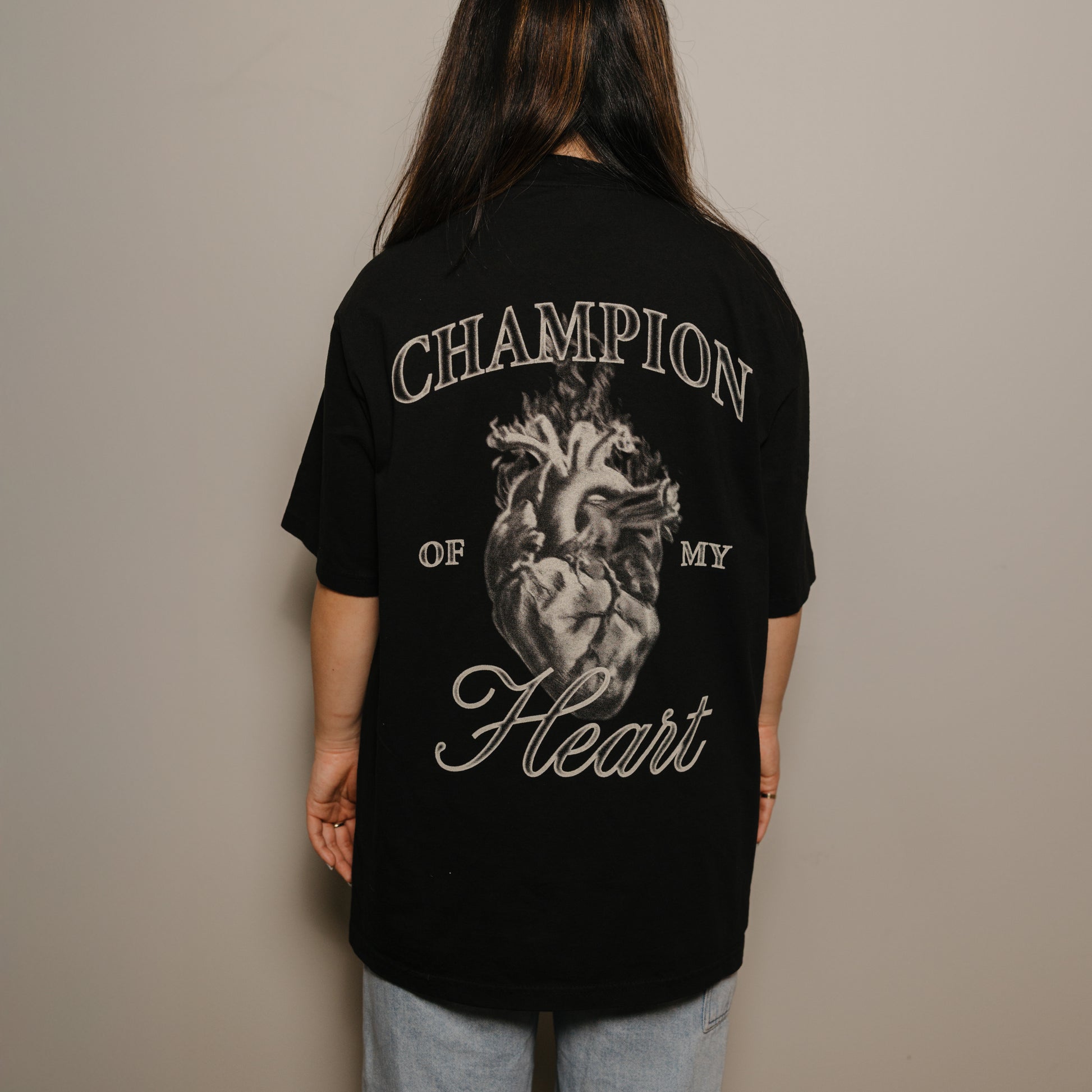 The Father Speak T-Shirt in charcoal gray is a bold yet timeless statement of faith, featuring a vintage-washed finish and a relaxed unisex fit. The front reads “Father Speak” while the back showcases the lyrics "Champion of My Heart". Made from 100% cotton, this shirt offers comfort and meaning. Perfect for everyday wear.
